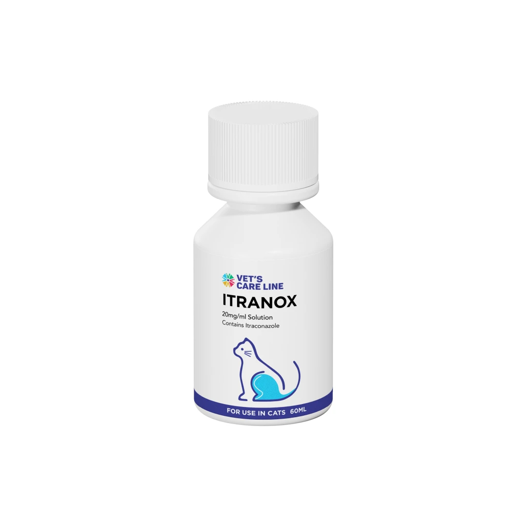 Itranox is a fungistatic triazole antifungal used to treat dermatophytosis caused by Microsporum canis, Malassezia dermatitis, and systemic mycoses (e.g., sporotrichosis) in cats.