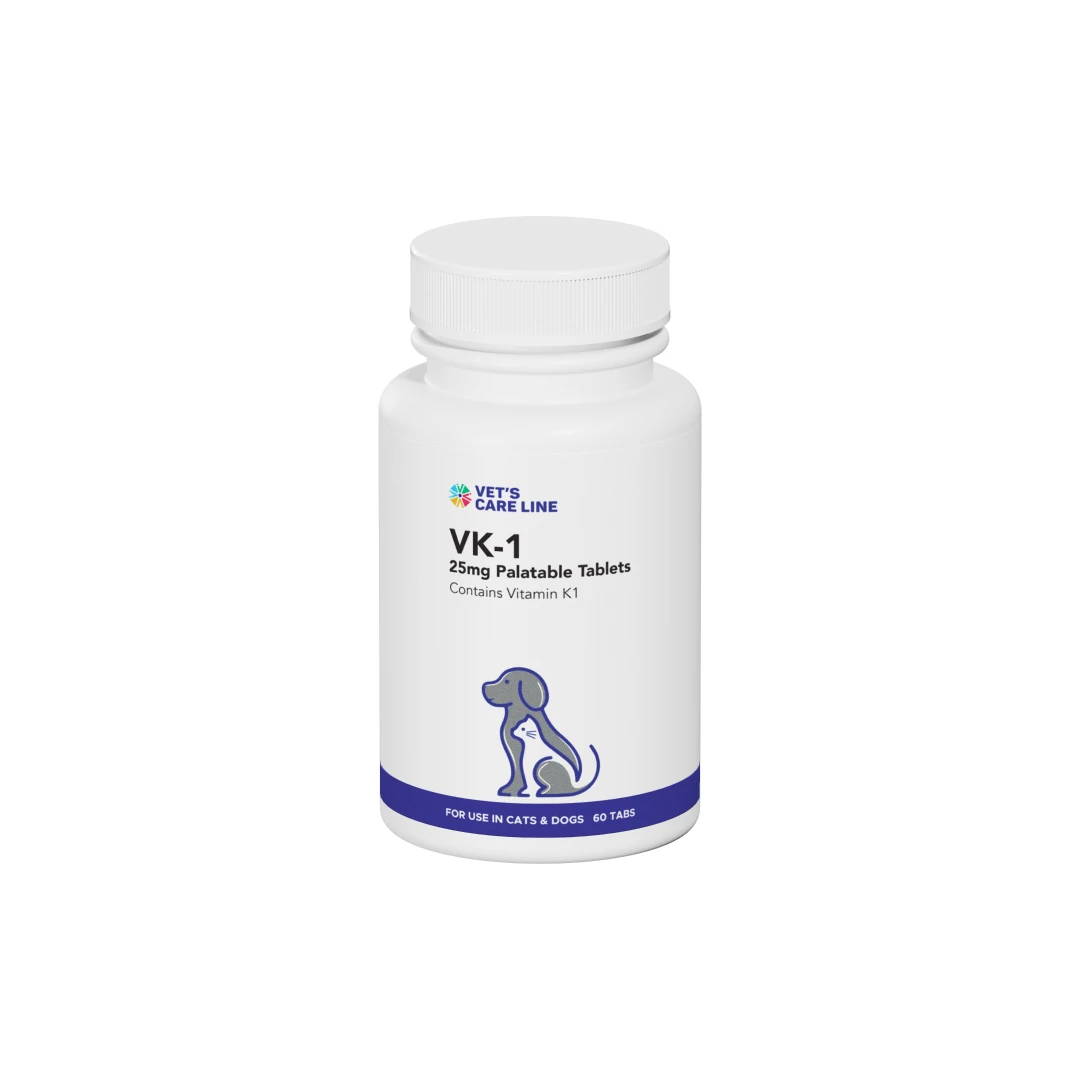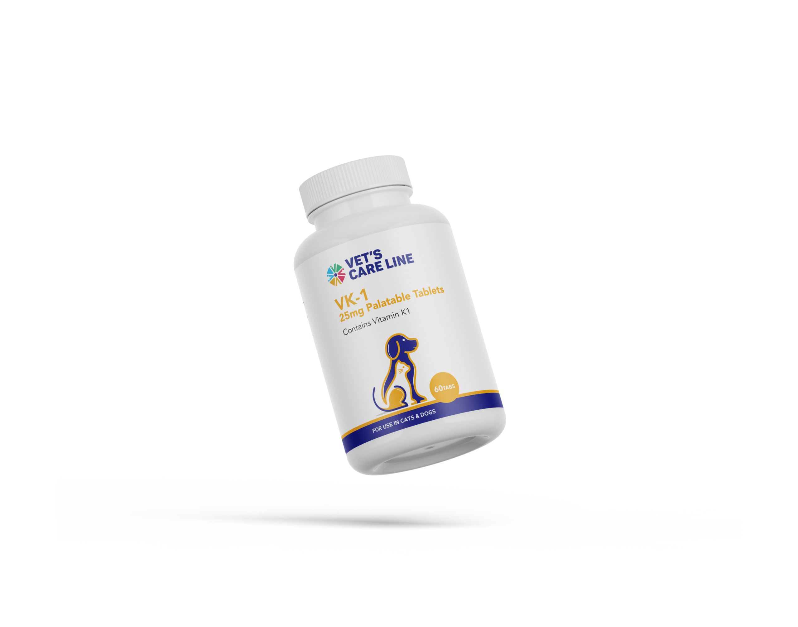 VK-1 is primarily used to treat anticoagulant rodenticide toxicity, which affects Vitamin K-dependent clotting factors (II, VII, IX and X), leading to coagulation failure and internal bleeding. It may also be indicated for bleeding disorders associated with liver failure or impaired absorption of Vitamin K due to inflammatory bowel disease (IBD), exocrine pancreatic insufficiency (EPI), or bile duct obstruction.